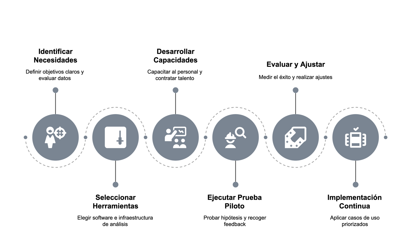 Identificación de Necesidades: Definir objetivos claros, Evaluar los datos disponibles, Involucrar a las partes interesadas.
