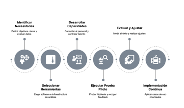 Selección de Herramientas y Tecnologías adecuadas: Seleccionar Software de análisis de datos, Infraestructura de datos, Integración de sistemas.