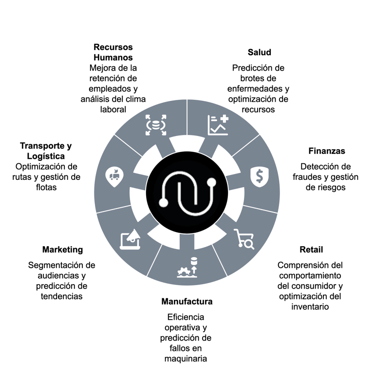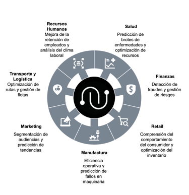 La analítica avanzada de datos se ha convertido en una herramienta esencial en diversos sectores, permitiendo a las organizaciones tomar decisiones informadas basadas en el análisis profundo de grandes volúmenes de datos, dentro de las siguientes industrias: