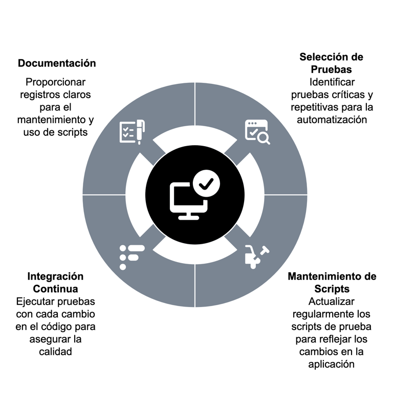 Seleccionar las Pruebas Adecuadas: No todas las pruebas deben ser automatizadas. Es importante identificar aquellas que son repetitivas y críticas para el negocio.