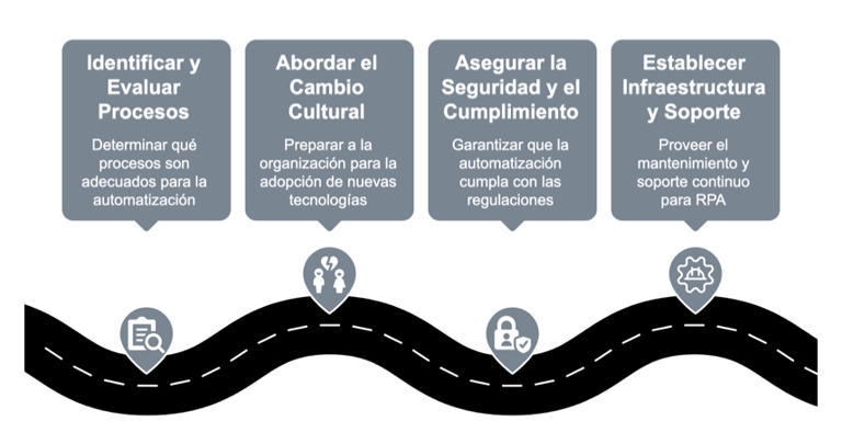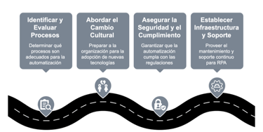 Nuestro proceso de implementación para Automatización Inteligente considera todos los factores relevantes para una puesta en marcha exitosa: