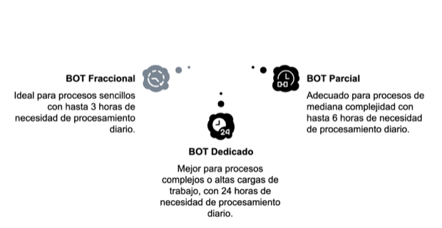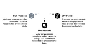 Agente Fraccional: Ideal para automatizar procesos sencillos, con capacidad de 1 a 3 horas diarias de procesamiento.