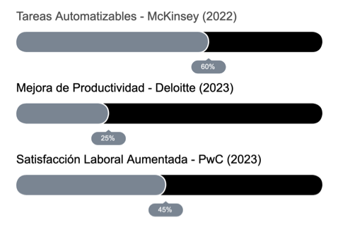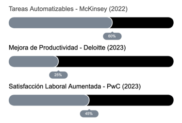 Según un informe de McKinsey (2022), aproximadamente el 60% de las tareas en las empresas pueden ser automatizadas en algún grado, siendo las funciones repetitivas las más adecuadas para la automatización.