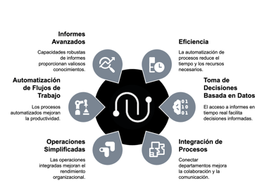 Automatización y optimización de flujos de trabajo: Mejora la eficiencia operativa y la productividad al automatizar procesos.