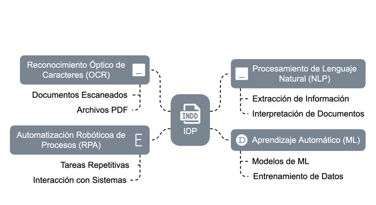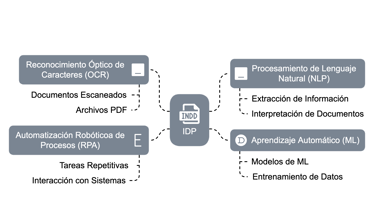 Automatización Robótica de Procesos (RPA): Complementa el IDP al automatizar tareas repetitivas que requieren interacción con sistemas digitales.