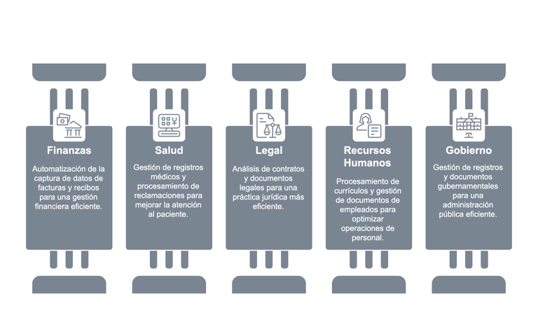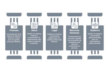 Salud: Gestión de registros médicos y procesamiento de reclamaciones.