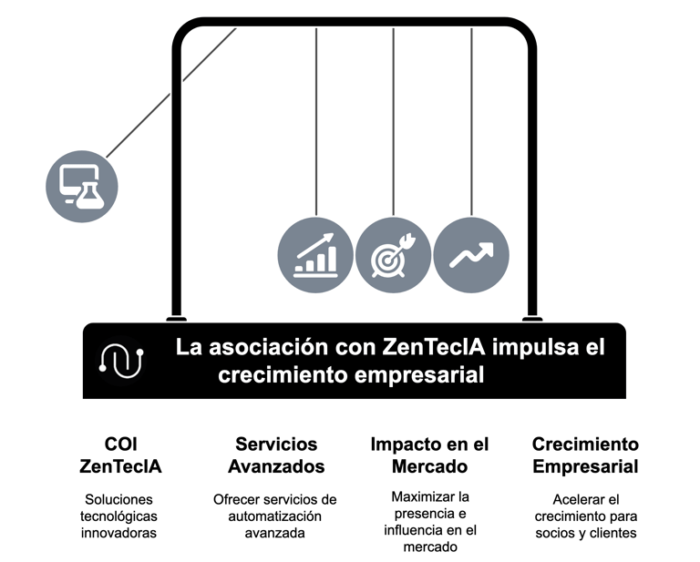 Como parte de nuestro ecosistema de socios, recibirás capacitación, soporte comercial y acceso a estrategias diferenciadas para maximizar tu impacto en el mercado. Impulsa tu crecimiento y el de tus clientes con ZenTecIA.